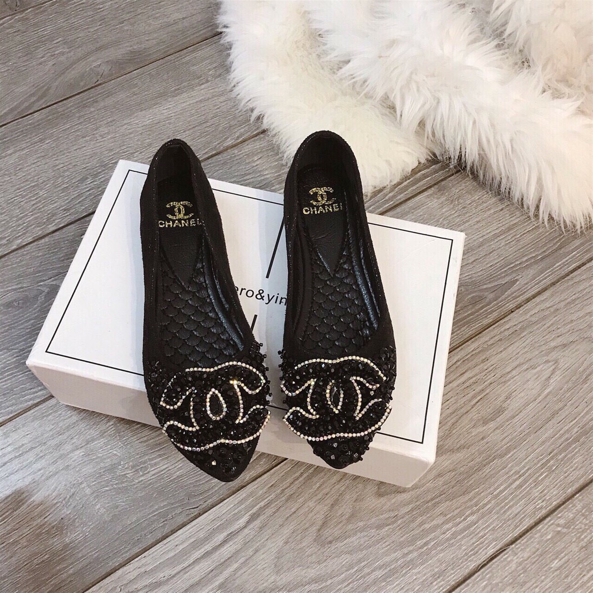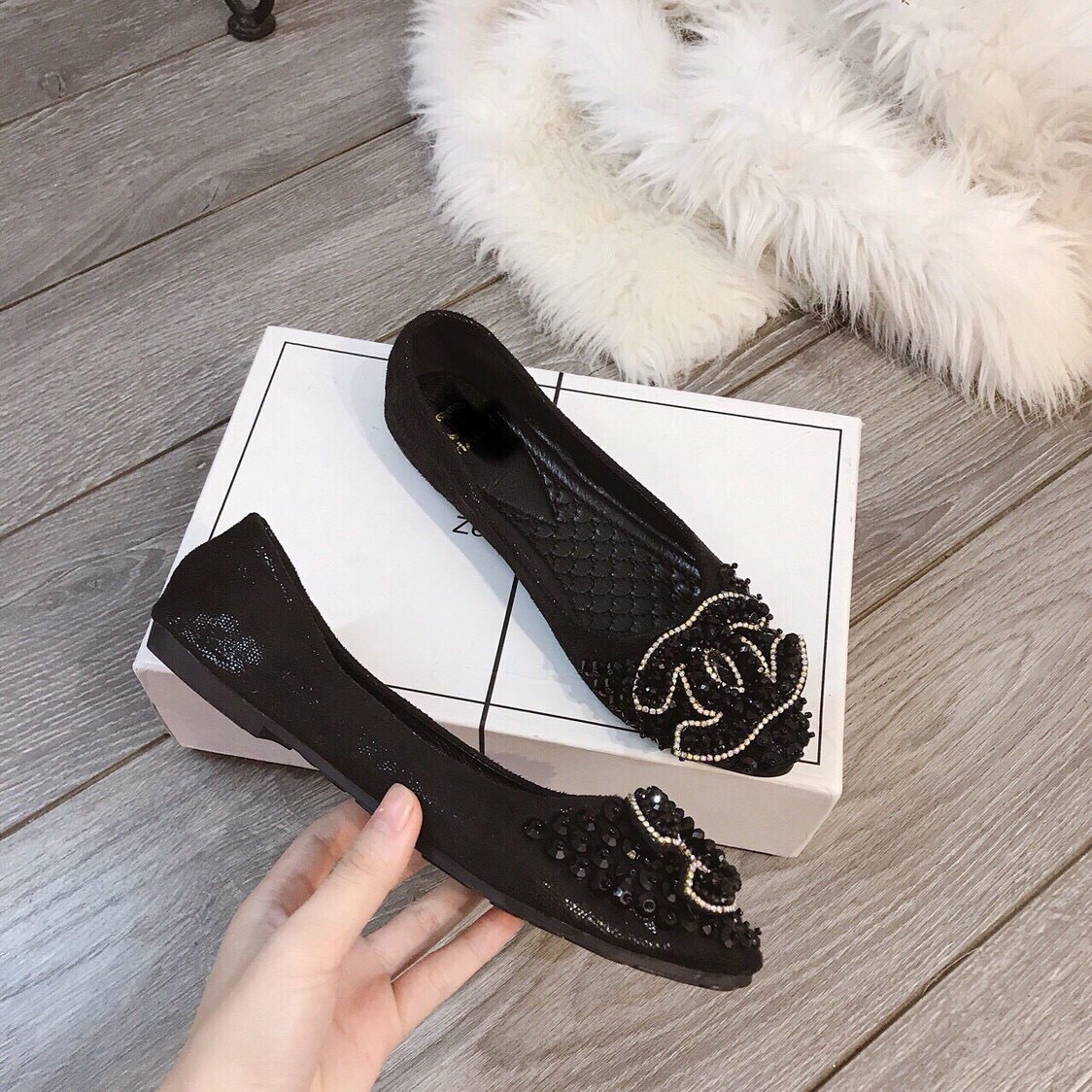 Giày bệt Chanel, mũi tròn, đính nơ , MÀU ĐEN - 320.000