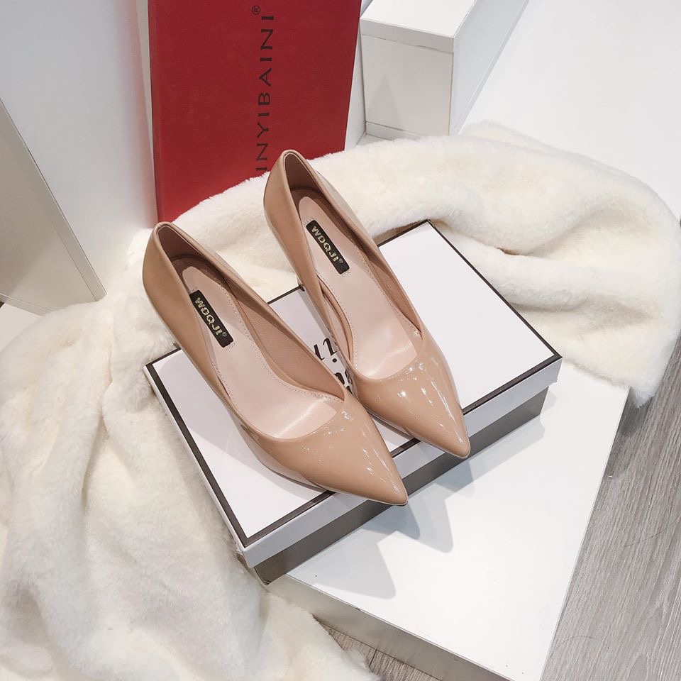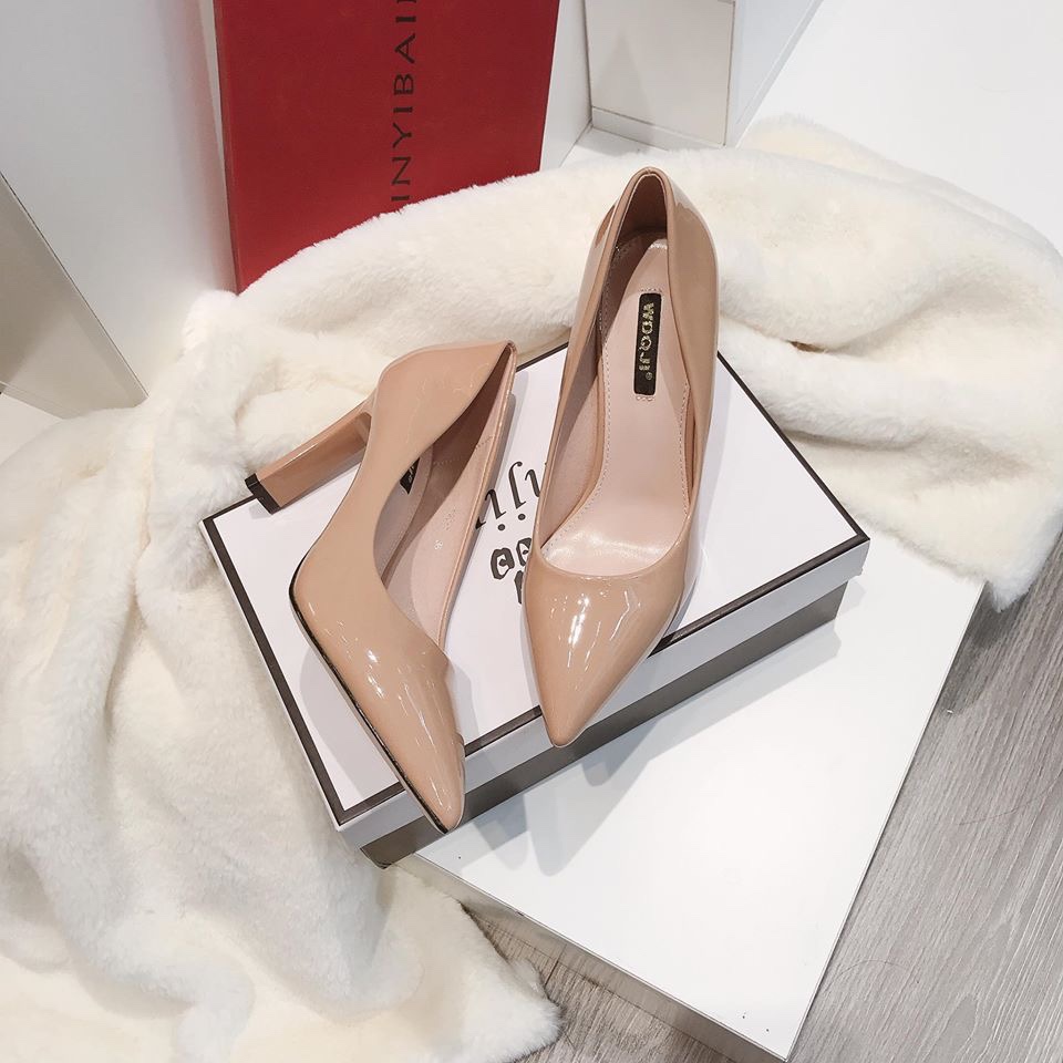 Giày cao gót WDQJI gót dẹt, cao 8p, màu KEM - 159.000