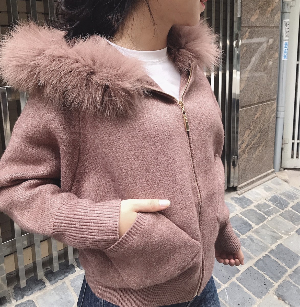Áo len, mũ lông thỏ, màu hồng - 800.000