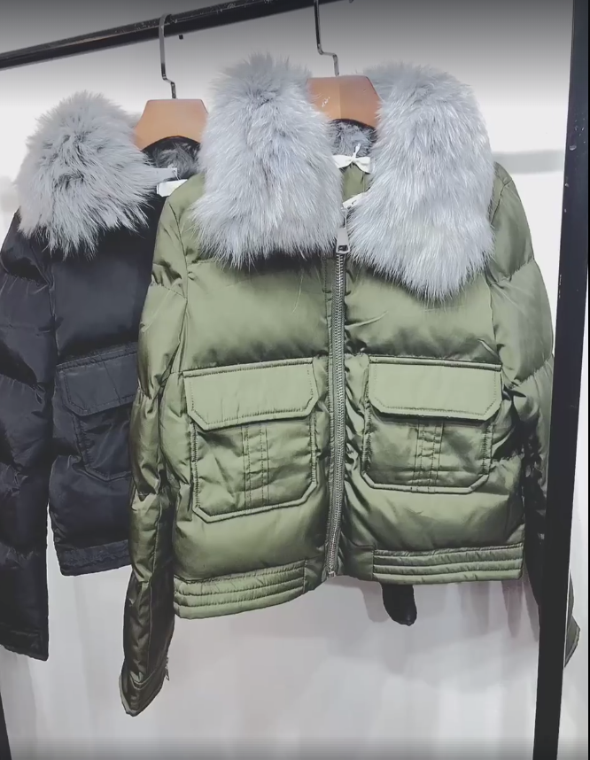 Áo phao có khóa rìa tay, túi hộp phía trước, màu xanh rêu