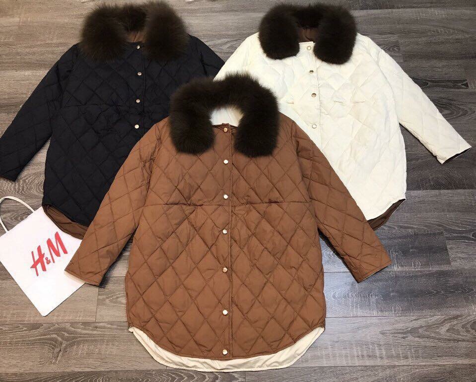 Áo phao trần trám, cổ lông, dáng dài, cúc vàng, màu nâu - 700.000
